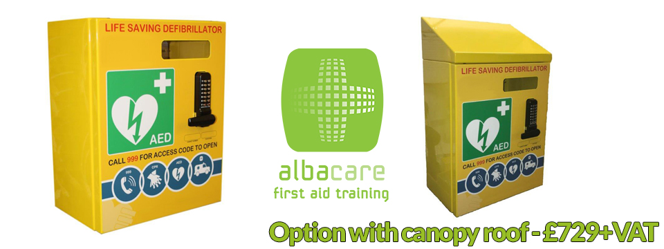 - Defib cabinet manufactured from mild steel, coated with an outdoor yellow powder coat Including a marine grade stainless steel keypad lock, Salt spray tested for 10k hours, internal LED lighting, thermostatically controlled heating in new "plug and play" self-contained unit, breather drain and internal hook to accommodate any defibrillator.